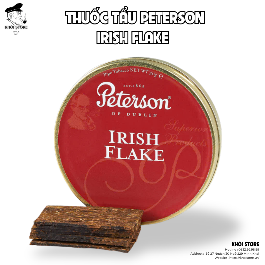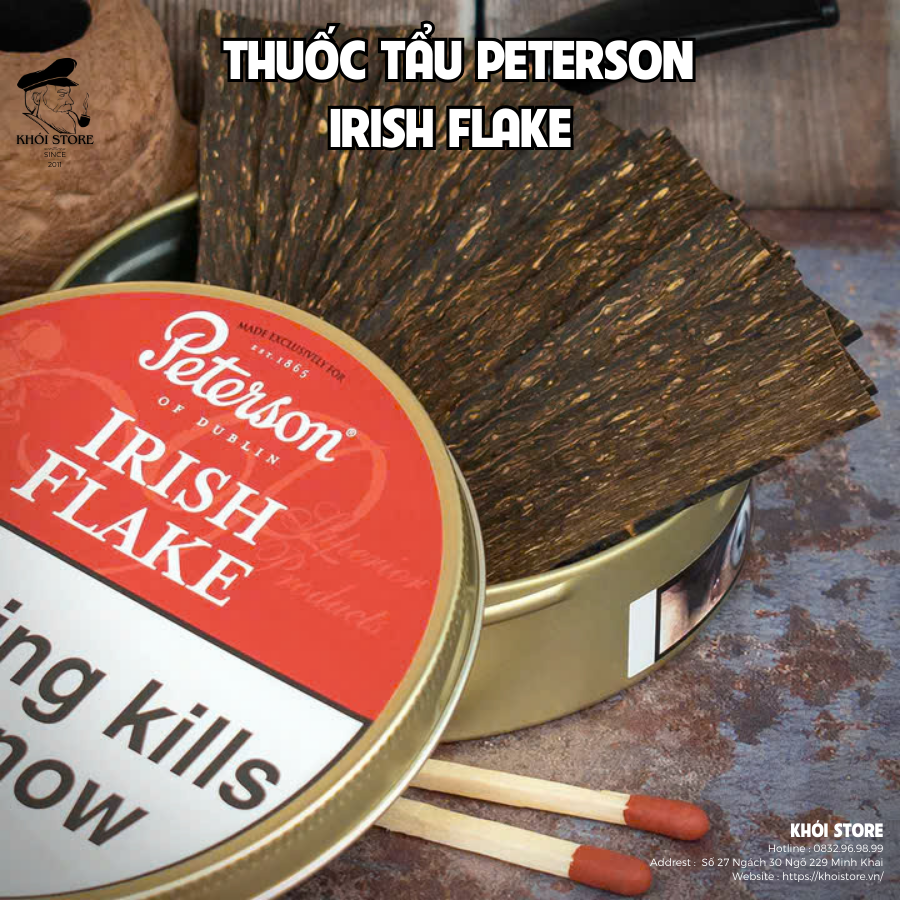 Thuốc Tẩu Peterson Irish Flake là một trong những dòng thuốc tẩu nổi tiếng và được ưa chuộng nhất đến từ thương hiệu Peterson of Dublin – một cái tên đã khẳng định vị thế trong thế giới thuốc tẩu từ năm 1865. Với phong cách đậm chất Ireland, dòng thuốc này mang đến một trải nghiệm mạnh mẽ, sâu lắng, dành cho những người hút tẩu có kinh nghiệm và yêu thích hương vị nồng nàn. Peterson Irish Flake không chỉ là thuốc tẩu, mà còn là sự kết tinh của truyền thống, nghệ thuật chế tác và tinh thần phóng khoáng đặc trưng của vùng đất Ireland.