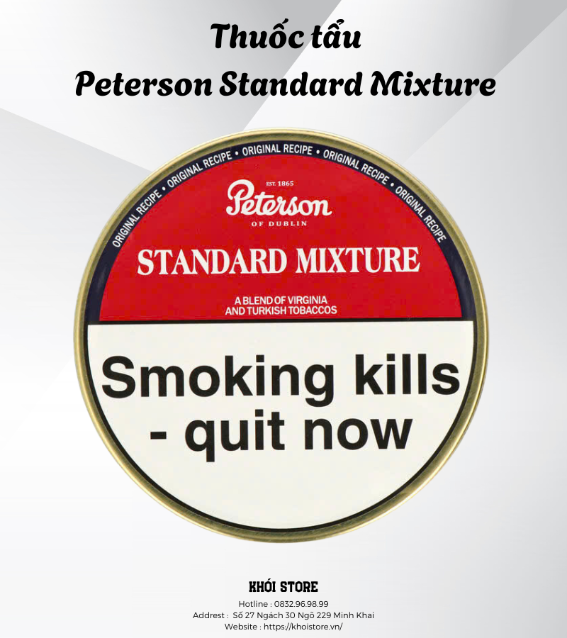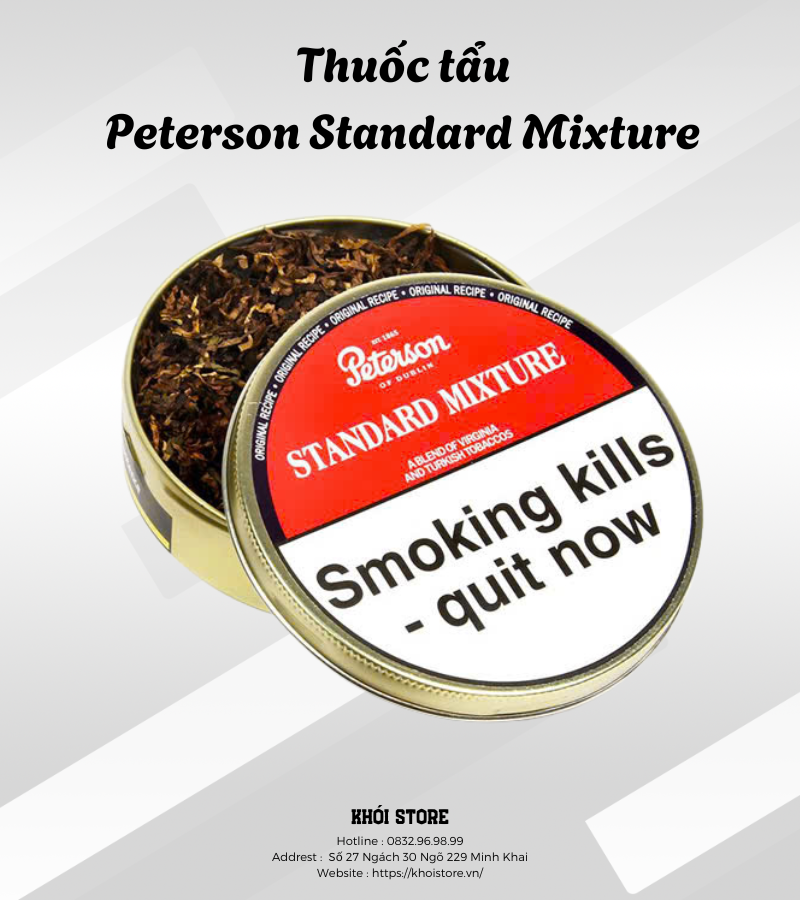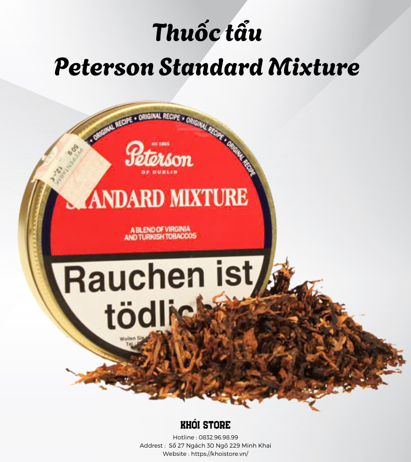 Peterson Standard Mixture không chỉ là một loại thuốc tẩu, mà còn là biểu tượng của chất lượng và truyền thống. Nếu bạn yêu thích sự thanh lịch, tinh tế và một trải nghiệm hút tẩu mang dấu ấn châu Âu cổ điển – đây chính là sự lựa chọn xứng đáng để đồng hành lâu dài.