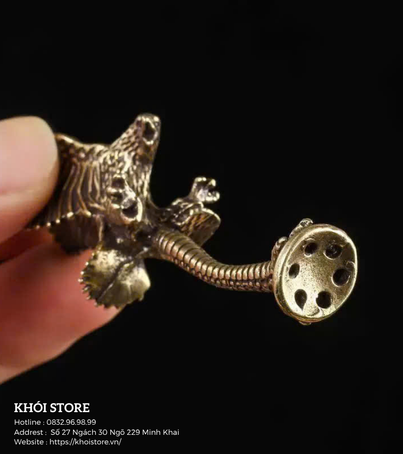 Toàn bộ sản phẩm được đúc từ đồng nguyên khối, mang lại độ bền vượt trội và khả năng chống oxy hóa tốt. Bề mặt được xử lý giả cổ, tăng thêm phần cổ điển, tạo cảm giác sang trọng và chắc tay khi sử dụng. Với trọng lượng vừa phải, sản phẩm không chỉ dễ cầm mà còn rất thích hợp để làm quà tặng cho bạn bè cùng chung đam mê.