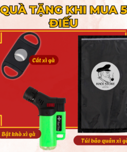 - Quà tặng hấp dẫn: Khi mua combo này tại Khói Store, bạn sẽ nhận được những phần quà đặc biệt như bật lửa cao cấp, dao cắt xì gà chính hãng, hoặc hộp bảo quản xì gà sang trọng. Những phần quà này không chỉ tiện dụng mà còn tăng thêm giá trị cho trải nghiệm thưởng thức của bạn.