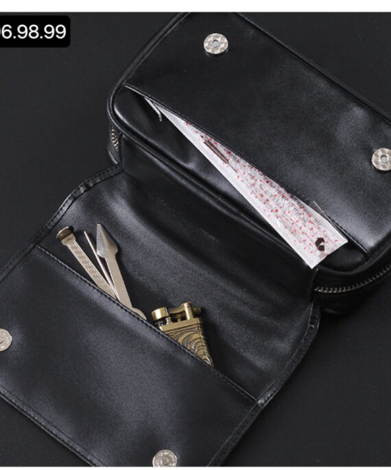 Ví Da Tẩu Savinelli 1876 To A3 sang trọng, cao cấp. Nhãn hiệu quen thuộc với những người hút sợi đam mê “tẩu gỗ đẹp“. Savinelli A3 có ngăn trữ rộng, có thể để cùng lúc 3 chiếc tẩu kèm các dụng cụ tiện ích khác. Được làm từ da mềm mại, bền đẹp và đặc biệt dễ làm sạch. Anh em có thể để sử dụng hoặc mua làm quà tặng cũng rất tuyệt vời.