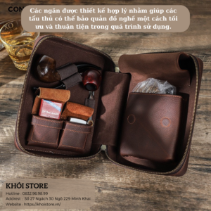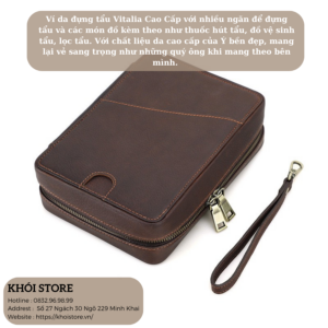 Ví da đựng tẩu Vitalia Cao Cấp với nhiều ngăn để đựng tẩu và các món đồ kèm theo như thuốc hút tẩu, đồ vệ sinh tẩu, lọc tẩu. Với chất liệu da cao cấp của Ý bền đẹp, mang lại vẻ sang trọng như những quý ông khi mang theo bên mình.