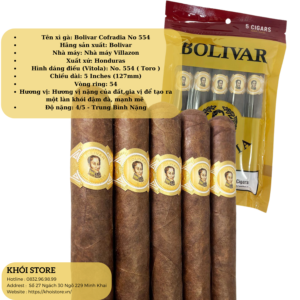 Nói tóm lại, xì gà Bolivar Cofradia số 554 toàn thân tạo ra một trải nghiệm hút mãnh liệt và một hương thơm tràn đầy sinh lực mà bạn sẽ muốn thưởng thức nhiều lần. Hương thơm quyến rũ của Bolivar Cofradia 554 khiến loại xì gà này không chỉ hấp dẫn bằng mắt mà còn cả mũi. Đó là một loại xì hoàn hảo cho những người đam mê xì gà có kinh nghiệm và phù hợp với danh tiếng lịch sử của Bolívar.
