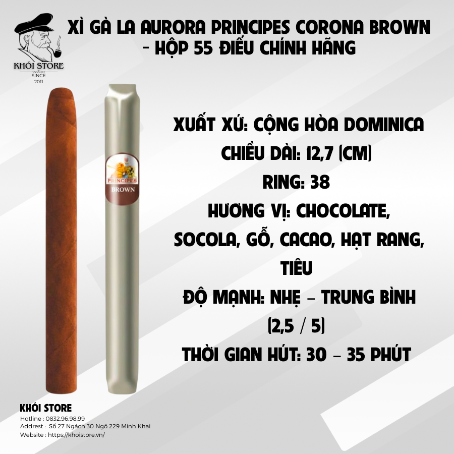 Tên sản phẩm Xì Gà La Aurora Principes Corona Brown – Hộp 55 Điếu Chính Hãng