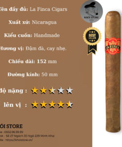 La Finca Ammo Box of 60 là một trong những dòng xì gà thủ công (handmade) nổi bật đến từ Nicaragua, nổi tiếng với chất lượng ổn định, giá thành hợp lý và hương vị dễ thưởng thức. Được đóng trong hộp đạn độc đáo với 60 điếu, sản phẩm này cực kỳ lý tưởng cho những ai yêu thích sự tiện lợi, hoặc cho các buổi party, dã ngoại, hay đơn giản là dự trữ cho nhu cầu thưởng thức lâu dài.