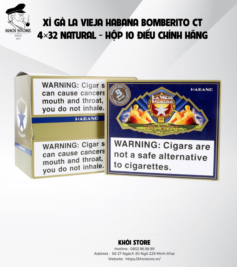 Xì Gà La Vieja Habana Bomberito CT 4×32 Natural – Hộp 10 Điếu Chính Hãng