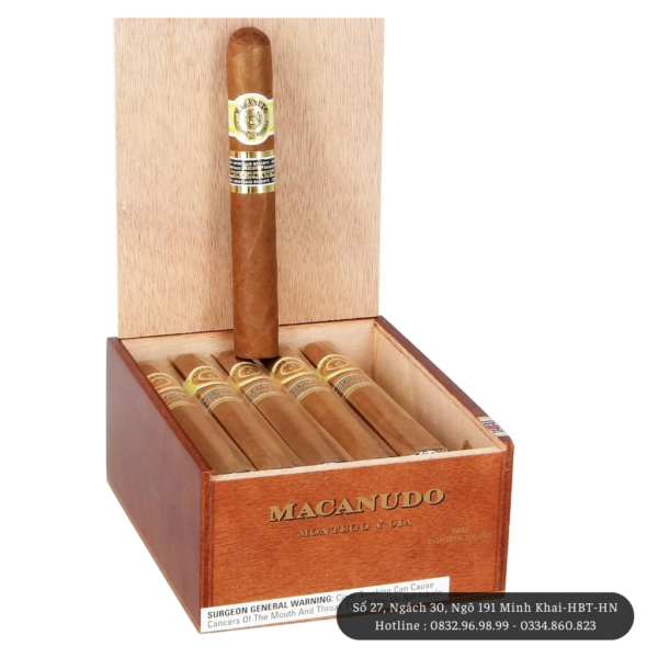 Quy Trình Sản Xuất: Quy trình sản xuất Macanudo Heritage Reserve là một sự kết hợp hoàn hảo giữa kỹ thuật truyền thống và công nghệ hiện đại. Mỗi điếu xì gà đều được cuốn bằng tay bởi những nghệ nhân lành nghề, những người có nhiều năm kinh nghiệm trong ngành chế tác xì gà. Lá thuốc được lên men và xử lý một cách cẩn thận để đảm bảo chất lượng đồng nhất và hương vị tốt nhất.