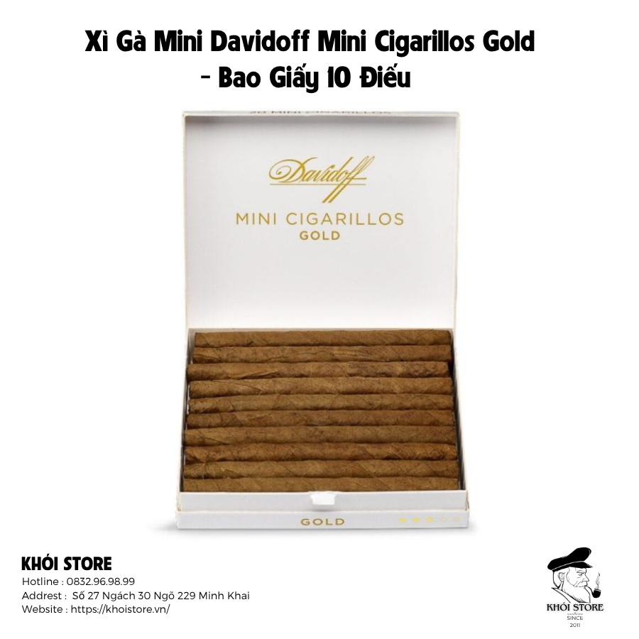 Khi nhắc đến thế giới xì gà cao cấp, Davidoff luôn là cái tên được tôn vinh hàng đầu. Thương hiệu Thụy Sĩ danh tiếng này nổi tiếng với quy trình chế tác tỉ mỉ, sự tinh tế trong từng chi tiết và chất lượng ổn định vượt trội.Dòng Davidoff Mini Cigarillos Gold là minh chứng cho triết lý “Time Beautifully Filled” – từng phút giây tận hưởng đều đáng giá. Sản phẩm được sinh ra để mang đến cho người thưởng thức một trải nghiệm ngắn gọn nhưng trọn vẹn, phù hợp cho những ai yêu thích xì gà mini nhưng vẫn đòi hỏi sự hoàn hảo tuyệt đối về hương vị và phong cách.