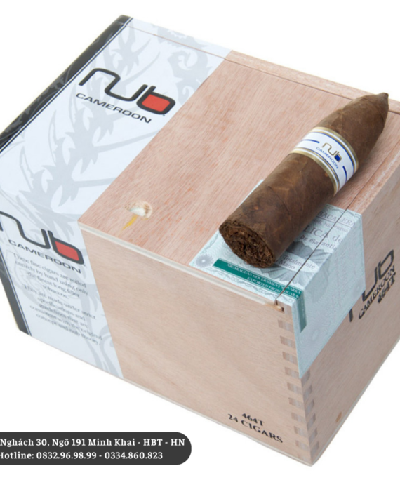 Nhìn bề ngoài, Xì Gà Nub Cameroon 464 Torpedo có chiều dài 4 inch nhưng có thước đo vòng ring 60 cực dày, xì gà Nub với lá wrapper bọc cameroon với lá filler và lá binder Nicaragua là một loại khói hương vị phức tạp, có độ nặng trung bình với những nốt vị của tuyết tùng và cà phê.