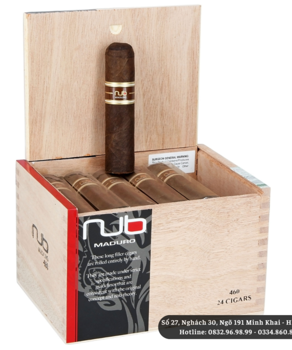 Xì Gà Nub Maduro 460 là một loại xì gà cao cấp giúp đem lại hương vị tối ưu một cách nhanh chóng. Điếu xì gà với chiều dài khiêm tốn vòng ring khổng lồ 60 giúp xì gà cháy mượt hơn, hút lâu hơn đồng thời làm nổi bật hương vị và chất lượng hút tuyệt vời. Nub Maduro có độ mạnh trung bình với hương cà phê và tuyết tùng phong phú