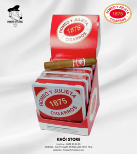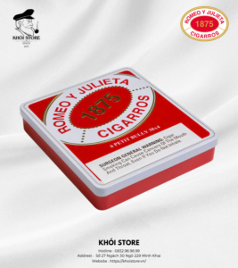 - Trên hộp in tên thương hiệu “Romeo Y Julieta 1875 Cigarros”, một thương hiệu lâu đời với lịch sử từ năm 1875.