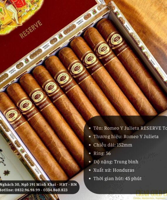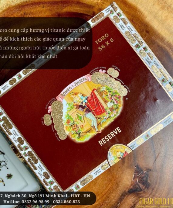 Xì gà Romeo Y Julieta Reserve Toro là sản phẩm bán chạy nhất trong nhiều năm nhờ hương vị êm dịu nhưng phức tạp và sự sẵn có rộng rãi. Tên gọi dễ nhận biết và lớp hoàn thiện màu kem khiến nó trở thành một loại xì gà tuyệt vời để xem xét cho tiệc cưới và đi chơi gôn.