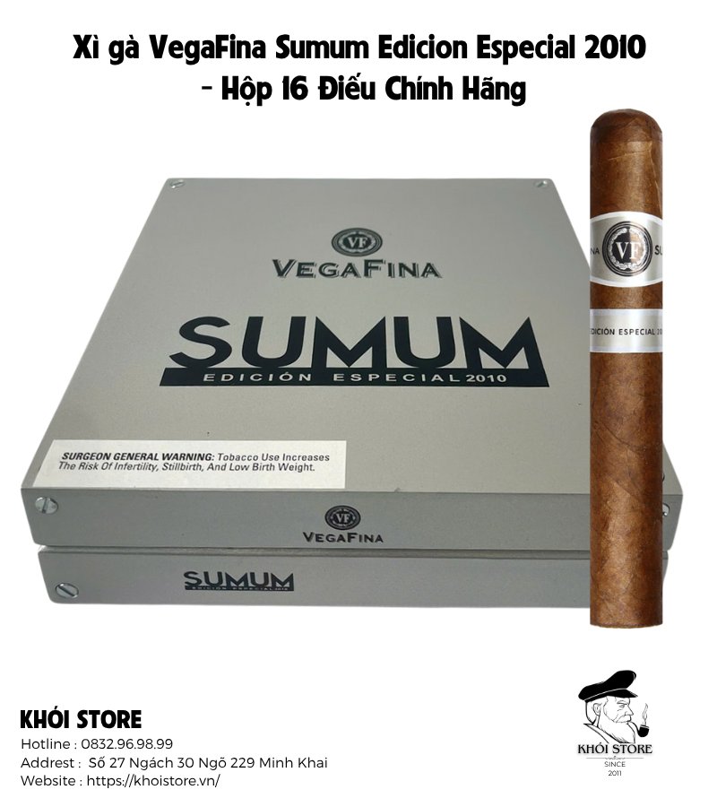 Dòng VegaFina Sumum Edicion Especial 2010 là một phiên bản đặc biệt, được ra mắt nhằm tôn vinh nghệ thuật pha trộn thuốc lá đỉnh cao, dành riêng cho những người yêu thích hương vị truyền thống nhưng vẫn muốn trải nghiệm sự độc đáo.