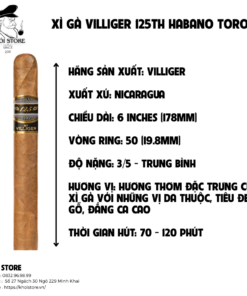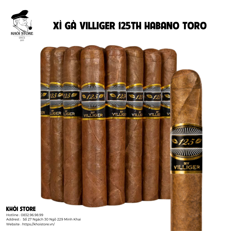 Xì Gà Villiger Habano Toro thứ 125 là phiên bản kỷ niệm đặc biệt được Villiger ra mắt tôn vinh hành trình 125 năm hình thành và phát triển thương hiệu xì gà danh tiếng đến từ Thụy Sĩ. Dòng sản phẩm này không chỉ mang ý nghĩa lịch sử mà còn thể hiện trình độ pha trộn thuốc lá (pha trộn) ở đẳng cấp cao, hướng tới những người hút xì gà yêu thích cân bằng, tinh tế và chiều sâu hương vị.