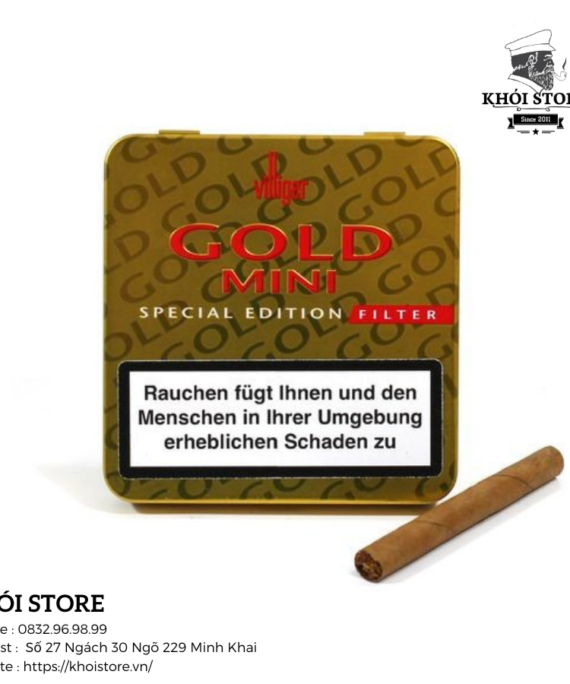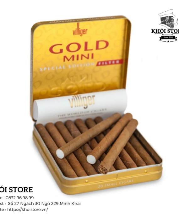 Villiger Gold Mini Filter là dòng sản phẩm đặc biệt Gold của Villiger, được lựa chọn từ nhiều loại thuốc lá tốt trên thế giới. Villiger Gold Mini Filter mang tới sự sang trọng với đầu lọc nổi tiếng Burley, Orient Havana. Rất thích hợp với các Doanh nhân thành đạt.
