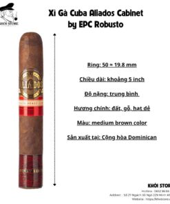 Xì Gà Aliados Cabinet by EPC Robusto Hộp 20 Điếu là minh chứng cho sự tôn trọng tuyệt đối với truyền thống Cuba kết hợp với kỹ thuật cuốn xì gà hiện đại không thể chê vào đâu được của EPC.
